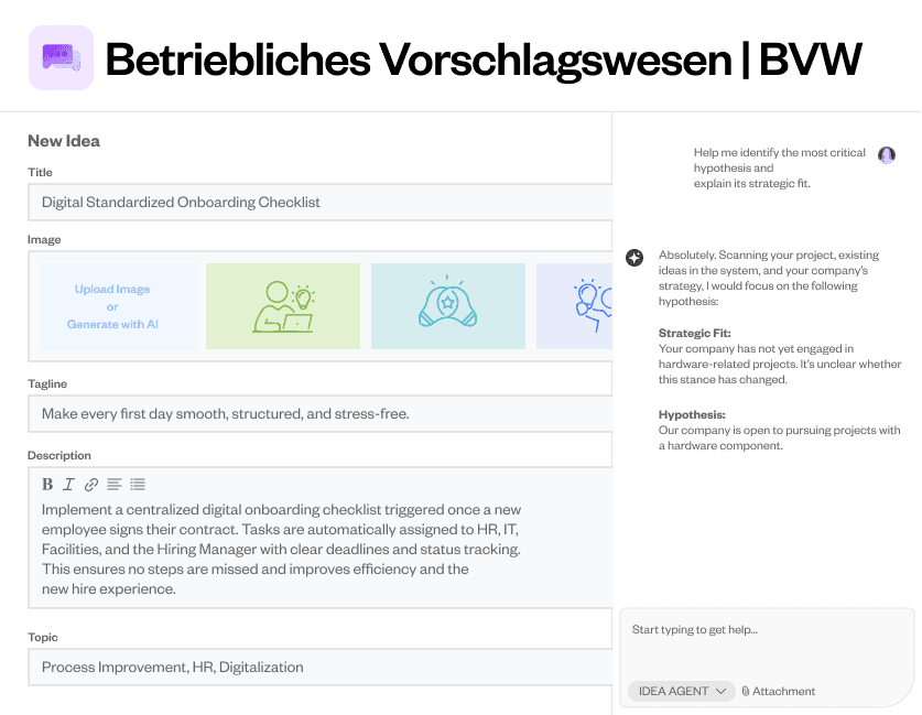KI automatisiert Bewertung, Routing und Prämierung. Das verkürzt Durchlaufzeiten, reduziert manuellen Aufwand und schafft Transparenz.