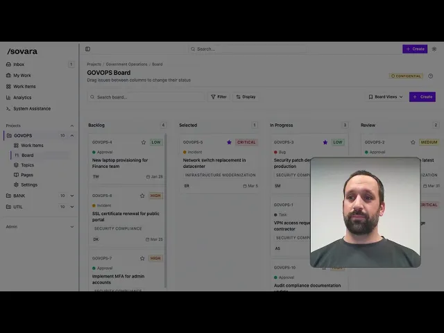 sovara ist eine souveräne Alternative zu Jira für Unternehmen und öffentliche Organisationen, die volle Kontrolle über ihre Workflows, Daten und Governance benötigen.