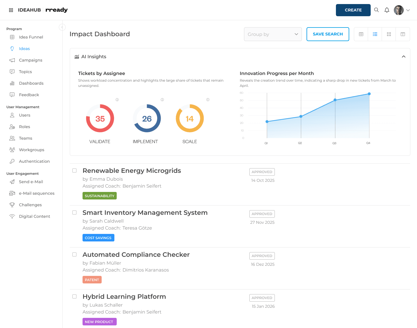 Capture, evaluate, and scale ideas across your organization. Our AI-native platform uses agentic workflows to identify inefficiencies, validate innovation projects with data, and track ROI.