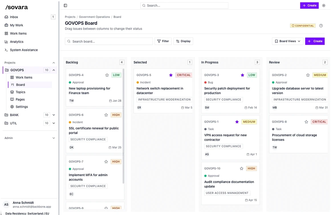 sovara is a sovereign alternative to Jira for enterprises and public-sector organizations that need full control over their workflows, data, and governance.